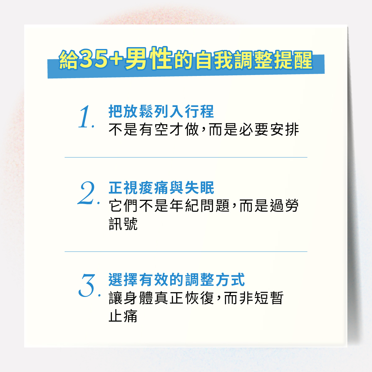 給 35+ 男性的自我調整提醒
